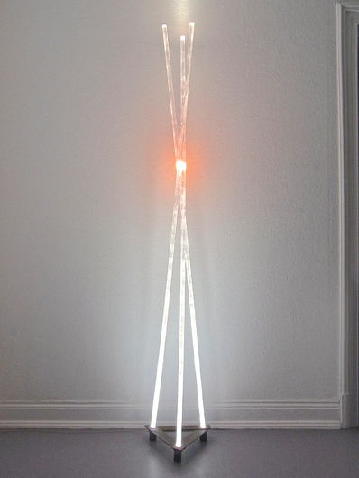 3 Plexiglasstäbe 200 cm, gefärbt, 2500,- € mmmmmmmmmmmmmmmm.mmmnm.mmm 3 Leds in Holzsockel 30 x 30 cm
